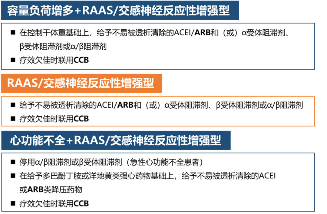 | 以控制容量为核心,对RAAS/交感活性高者针对性以RAASi干预。 高血压是维持性血液透析(MHD)患者常见合并症之一,也是导致透析患者死亡及其他致死性心、脑血管并发症的主要因素。中美数据显示,有91%~98.2%的MHD患者存在高血压,高血压的存在不仅可加剧慢性肾脏病的进展,还可增加心血管疾病的发生率和病死率。因此,控制血压是改善血透患者预后,预防与高血压有关并发症的重要举措。 9月30日的青年演说家直播间中,来自华中科技大学同济医学院附属同济医院肾内科的李俊华教授与我们分享了透析患者在血压控制面临的困难、窘境以及解决办法。一同参与讨论的还有来自华中科技大学同济医学院附属同济医院肾内科的姚颖教授以及来自四川大学华西医院肾内科的李孜教授。 01、血透患者高血压患病率高,控制率低,干预势在必行 中国2009年数据显示,我国血液透析患者中高血压患病率为91%。那么,血透患者的血压控制率为多少呢?很遗憾,截止2014年这一比例仍不足45%。也就是说:几乎所有血透患者都受到高血压的困扰,而其中仅有不到一半可以达到血压的满意控制。 血压升高绝不仅仅是简单的数值变化。作为心血管疾病的一大危险因素,血透患者血压控制不佳会大大增加死亡风险。据一项持续了4年共纳入了1453名血液透析患者的多中心、前瞻性、随机、析因设计临床试验显示:心血管事件占所有透析患者死亡原因的53%。因此,在透析患者中做好高血压的二级预防或可显著改善患者生存预后。 大量临床试验均对透析的高血压患者死亡率与其血压之间的关系进行了探究,所得结果表明透析高血压患者死亡率与其血压呈U型关系:当收缩压(SBP)<110mmHg或>180 mmHg时,透析高血压患者的死亡风险明显增加。另外对于透析患者而言,他们的血压除了存在昼夜节律之外,还会因透析而发生改变。 02、疾病特殊、病因复杂,血压管理目标如何确定? 血透患者具有特殊性,因此虽然学界普遍认识到血压水平严重影响患者的心脑血管疾病发生率、生活质量以及死亡率等,但由于血液透析模式的特点导致患者内环境呈现周期性波动状态,各国指南尚未对血压测定方式、血压测量时间点以及具体的血压值控制水平达成共识:K/DOQI指南 2005建议透析前血压<140/90 mmHg、透析后血压<130/80 mmHg(C类证据),且明确指出数据部分来源于非血透患者,目标值参照总体人群血压设定,结论多来自观察性试验,随机对照试验较少。 针对这一棘手的问题,《中国血液透析充分性临床实践指南》指出应特别关注透析前血压水平。透析前血压水平在一定程度上能反映患者血管内容量状态、干体重及体内RAAS活性状态,也可反映透析治疗是否将患者“还原”到了接近干体重的状态。 部分患者透析前即存在高血压,有效控制透析前血压对预防心脑血管事件也是一个关键因素。因此,结合现有文献资料并结合我国实际情况,中国指南建议将透析前血压控制在SBP<160 mmHg(含药物治疗状态下)。 03、从机制出发、做个体化管理 要做好血透患者的血压管理,就要了解肾在血压调解中扮演的重要角色。正常肾脏调节能力正常,可通过神经体液调节避免高血压的持续危害。但血透患者由于肾脏功能的基本丧失,肾脏不能排除机体多余的水钠负荷,肾脏病变引起,肾素-血管紧张素-醛固酮系统(RAAS)活化和交感神经兴奋增强,高血压发生难以避免。 因此,容量负荷过重、水钠潴留以及RAAS、交感神经兴奋是血透高血压发生的重要机制。且已有多项研究均证实了透析患者交感活性增强与高血压之间的强关联性:受损的肾脏是导致交感神经活性增强的主要原因,且交感活性增强可显著增加透析患者的全因死亡和心血管事件风险。 在具体治疗中,肾性高血压指南将容量控制作为透析患者高血压治疗的最主要环节。要求通过严格控制钠及水的摄入量以达到满意血压控制,对于无法单纯通过控制钠水摄入实现血压控制者增加透析时间。 除此之外,对于RAAS/交感活性增高者,应针对性选择可显著降低RAAS、交感神经活性的药物,也就是RAASi(ACEI或ARB);对于透析过程中血压升高的患者,不宜选择透析易于清除的降压药物,而应当选择透析难以清除的药物如ARB、CCB等。 根据已发表的荟萃研究结论,在已上市的单片复方制剂(SPC)中,奥美沙坦酯/氨氯地平 FDC兼具了不易经透析清除和降压强效的优势。其降压疗效优于平均水平:SBP与DBP降幅显著高于平均水平,且是引起DBP降幅唯一超过15 mmHg的SPC。另据中国真实世界研究,对于难治性高血压患者(使用≥3种最优化剂量降压药仍不达标)的8周血压达标率高达62.5%。 最后,以一张表格总结如何对不同类型的透析患者有针对性的实施血压管理。 |